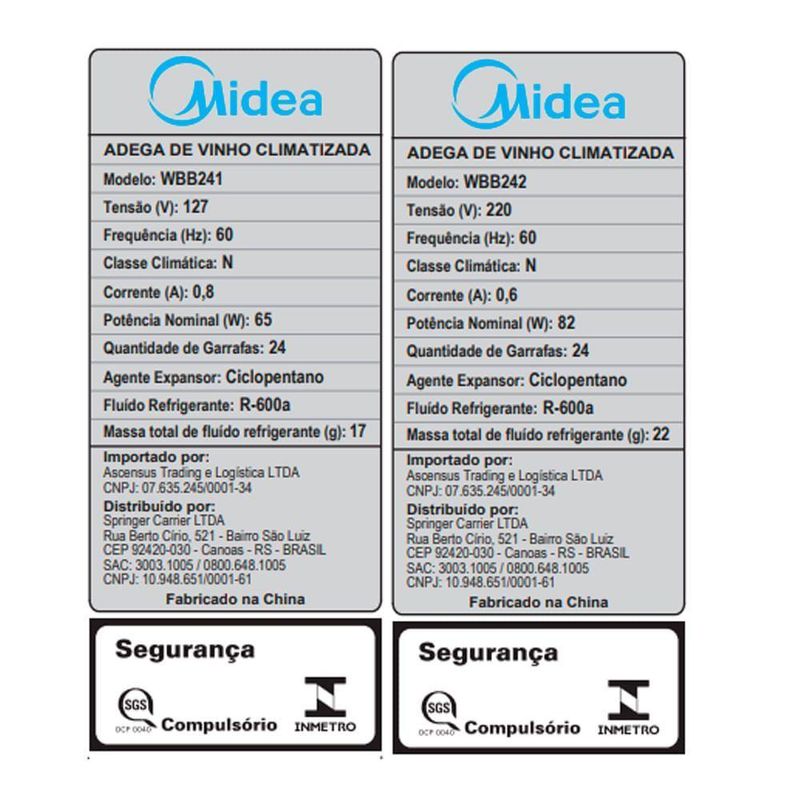 Adega Climatizada De Vinhos 24 Garrafas Midea Wbb241 - 127v