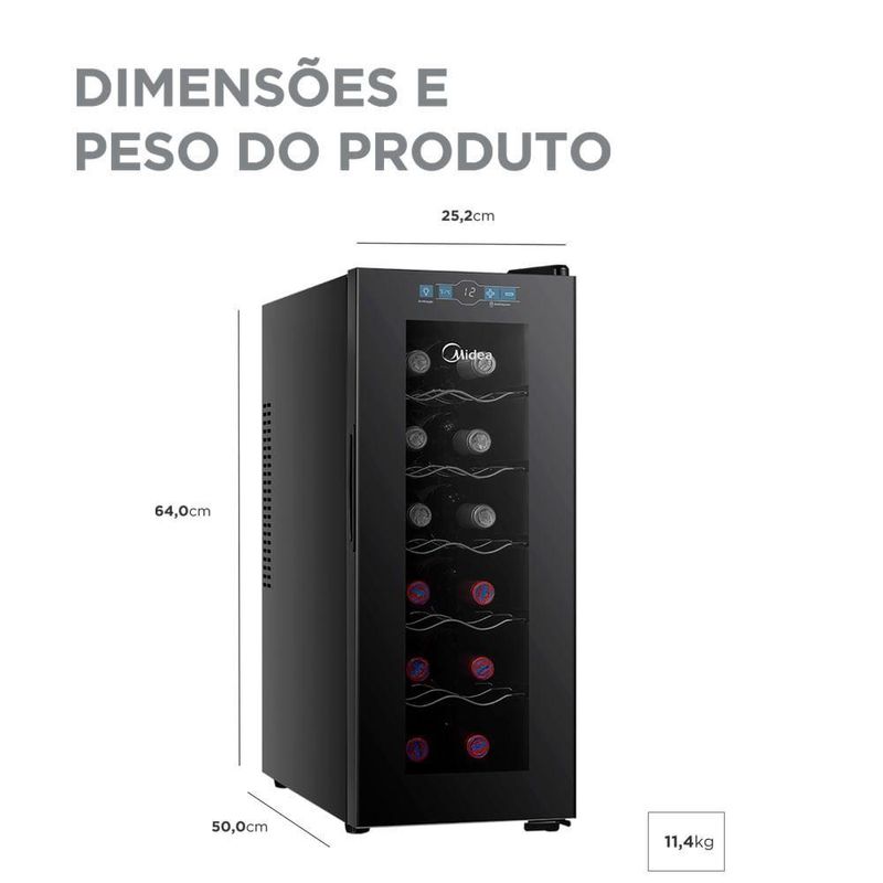 Adega Climatizada Midea 12 Garrafas MDRW066FGGGL3 - BivoltDesign moderno e alta funcionalidade para os amantes de vinho