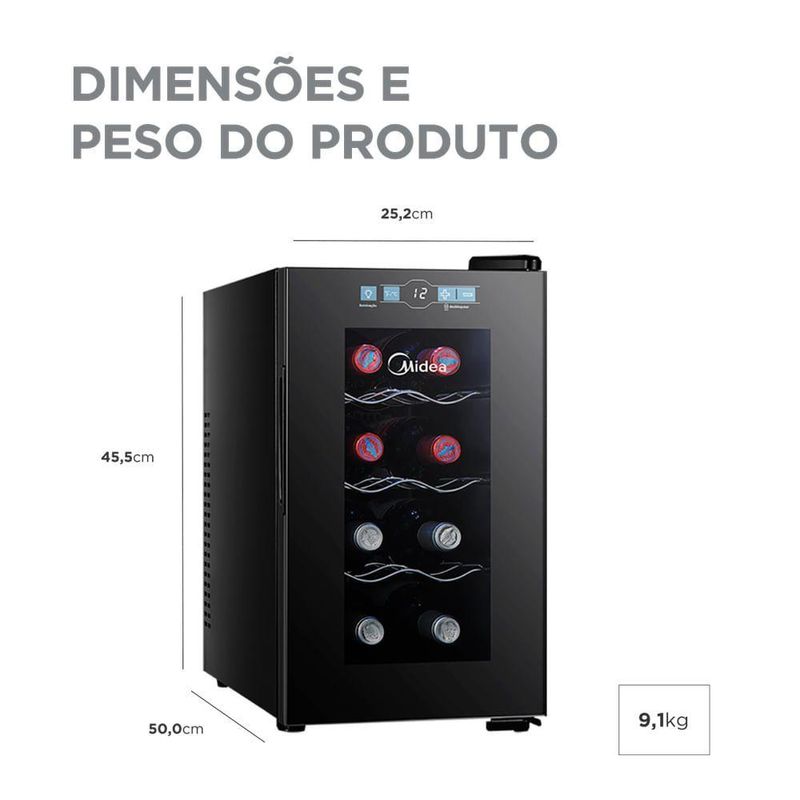 Adega Climatizada Midea 8 Garrafas MDRW053FGGGL3 BivoltDesign moderno com funcionalidade inteligente