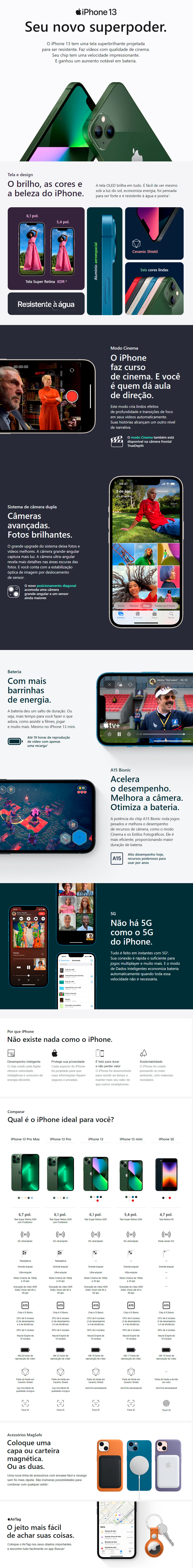 O iPhone 13 Meia-Noite é sinônimo de excelência. Um aparelho potente, lindo e que foi feito para ser usado e admirado por muito tempo.