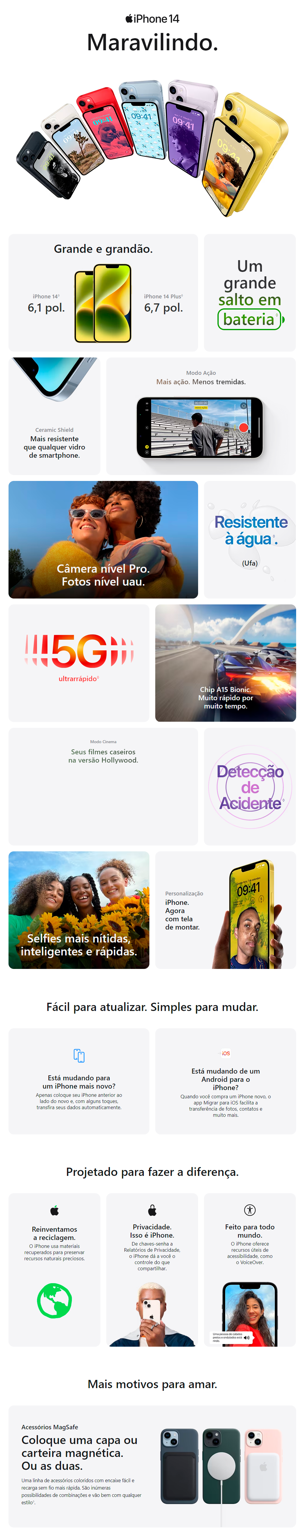 iPhone 14 Estelar. Mais poder, mais segurança, mais você."