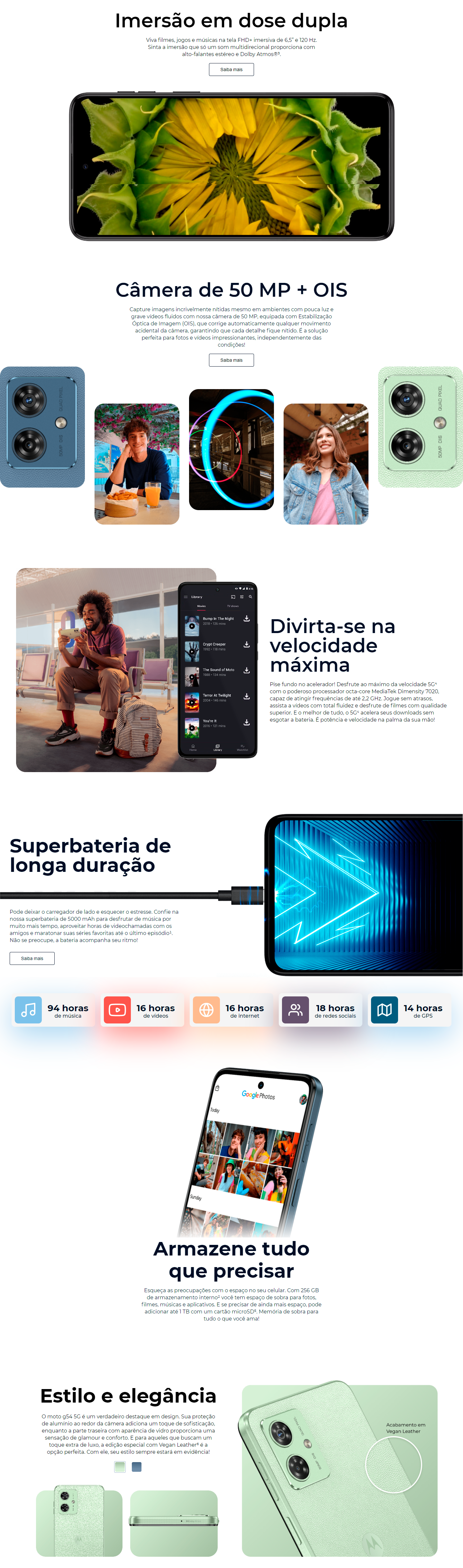 Smartphone Motorola G54 5G 256GB Azul Tela de 6.5" Processador Octa-Core