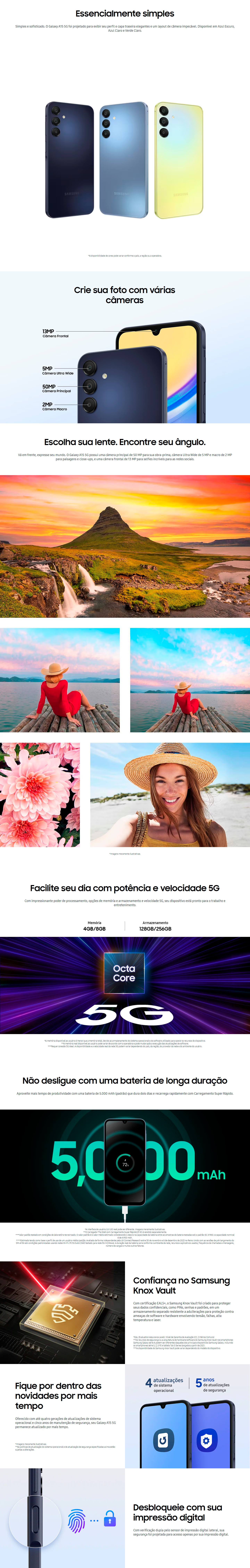 Smartphone Samsung A15 5G 256GB Azul Escuro