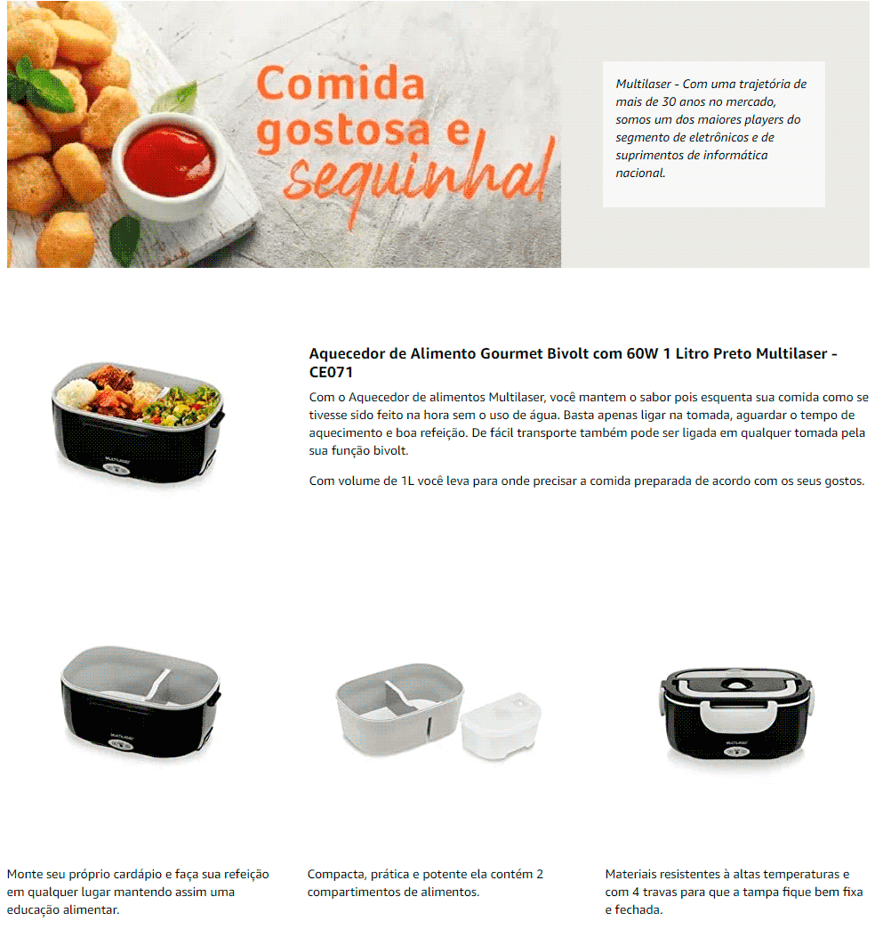 Tenha seus alimentos sempre quentinhos, como se tivessem sido feitos na hora! Com o Aquecedor de Alimentos Multi CE071, você pode saborear sua comida preferida onde quiser, com o gostinho fresco e caseiro de sempre. Desenvolvido para ser prático e seguro, é livre de bisfenol, bivolt e possui capacidade de 1 litro.
