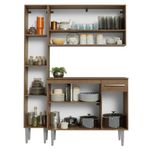 Esta composição inclui um paneleiro com duas portas, um balcão com três portas e uma gaveta, um aéreo com duas portas e um nicho aberto, oferecendo amplos espaços para armazenamento e organização. O acabamento em tom amadeirado Rustic transforma sua cozinha em um ambiente aconchegante e funcional.
