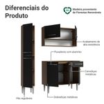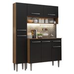 Esta composição inclui um paneleiro com duas portas, um balcão com três portas e uma gaveta, um aéreo com duas portas e um nicho aberto, oferecendo amplos espaços para armazenamento e organização. O acabamento em tom amadeirado Rustic e Preto cria um visual moderno para a sua cozinha.