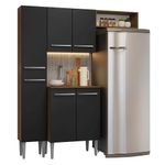 Esta versão inclui um paneleiro com duas portas, um balcão com duas portas e tampo, um aéreo com duas portas e um nicho aberto, ideal para posicionar a geladeira logo abaixo. O acabamento em tom amadeirado Rustic e preto valoriza o ambiente, trazendo um visual moderno e elegante para a sua cozinha.