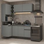 O acabamento cinza, transmite modernidade e leveza. Os puxadores na coloração titanium são detalhes que valorizam o design trazendo um toque contemporâneo.