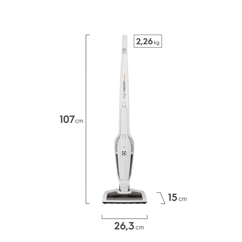 Aspirador de Pó Vertical Sem Fio Electrolux Ergorapido 2 em 1 Cyclone até 21 min Branco (ERG21)