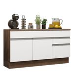 Desenvolvido com materiais de alta qualidade, possui portas com puxadores em alumínio e dobradiças com amortecimento. Conta também com duas gavetas com corrediças telescópicas, sendo uma delas maior.