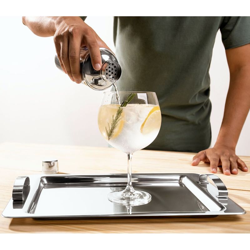Fabricada em aço inoxidável de alta qualidade, a bandeja é extremamente resistente, não apresenta porosidades e é fácil de limpar, evitando o acúmulo de resíduos e garantindo maior higiene. As alças laterais proporcionam um manuseio seguro e confortável, facilitando o transporte de alimentos e bebidas com segurança.