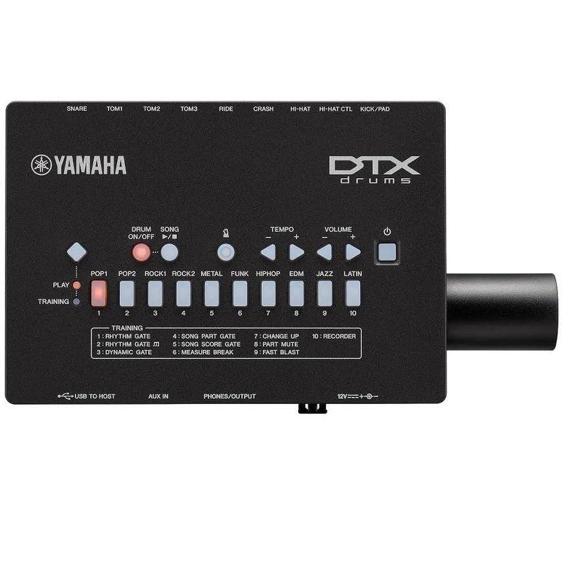 A Bateria Eletrônica DTX402 da Yamaha possui um excelente design e qualidade de som vem com 10 músicas de acompanhamento e 10 funções de treino juntamente com um aplicativo gratuito que torna a prática mais agradável e fornece treinamento musical e ainda conta com um pedal de bumbo virtual silencioso e preciso.