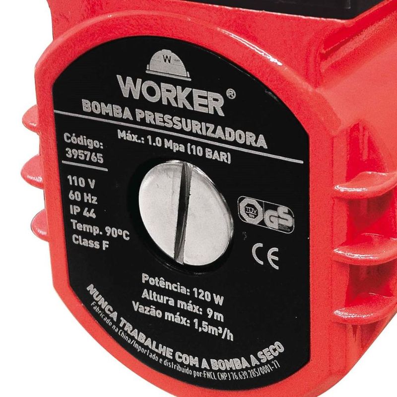 Código do Fornecedor: 395773Marca: WorkerConteúdo da embalagem: 1 Bomba Pressurizadora 120W 220V 3/4'' Worker Precisando de um equipamento que ofereça mais precisão e eficiência do bombeamento de pressão? A Worker desenvolveu um Pressurizador de Água que garante um excelente fluxo de vazão e pressão, pois a sua projeção foi pensada para acrescentar pressão adicional para o sistema doméstico de aquecimento de água, sendo ela solar ou a Gás. Além disso, é ideal para o bombeamento de água limpa, isentando de sólidos e líquidos químicos.