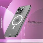 Outro destaque da capa está na tecnologia MagSafe integrada, que cria um anel de ímãs na parte traseira do celular, estabelecendo uma conexão magnética perfeita com carregadores sem fio compatíveis. Isso significa que você nunca mais terá que se preocupar com a posição correta na base de carregamento, pois a Crystal Slim Magsafe garante que seu dispositivo se alinhe de maneira precisa a cada uso, proporcionando uma experiência de carregamento sem esforço.
