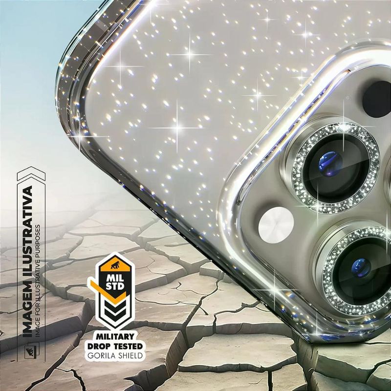 Além disso, a Capa Magsafe Glitter da Gshield possui protetor de lente, para garantir que a câmera do seu iPhone 17 permaneça protegida contra danos e arranhões. Assim, você pode capturar momentos preciosos com total confiança.