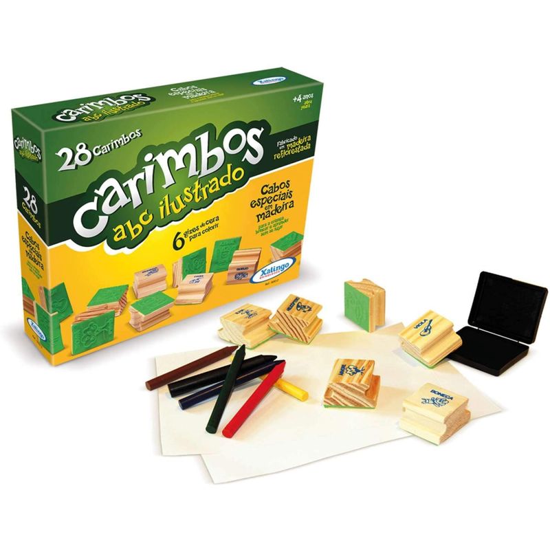 Aprender as letras ficou mais fácil e divertido com o Carimbos ABC ilustrado. Fabricado em madeira, contém 28 carimbos com cabo de madeira, 6 cores de giz de cera, 1 almofada para carimbo, 1 frasco de tinta atóxica, 10 folhas ilustradas para carimbar e colorir e 1 bloco de papel. Estimula a coordenação motora, a criatividade e imaginação.