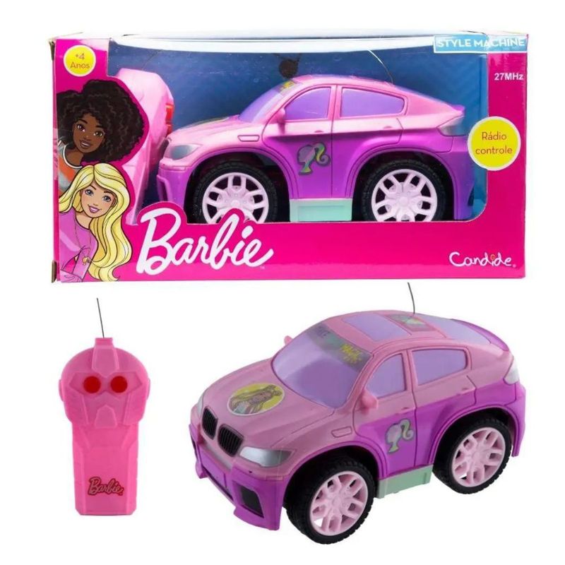 Veículo controle remoto com 3 funções de comando. Com Carro Style Machine Barbie a diversão garantida. É só apertar os botões, para esse lindo carro, andar para todos os lados.