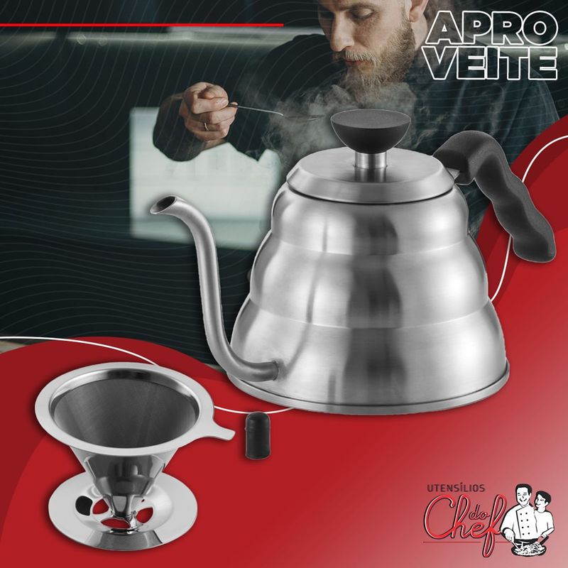 Chaleira muito usada por baristas profissionais bem como por quem gosta de curtir um bom café, a chaleira de "bico fino" foi projetada com um bico de saída mais fina, chamado de "pescoço de ganso", que permite controlar o fluxo contínuo da água quente enquanto a despeja.