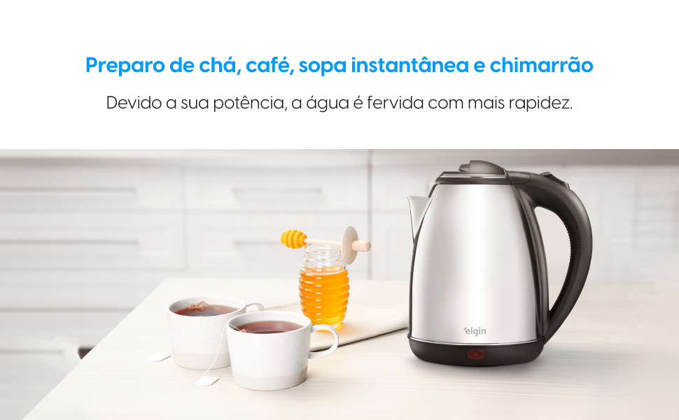 Transforme sua rotina com a Chaleira Elgin, que une praticidade, segurança e elegância em um único produto. Adquira já a sua e eleve a experiência de preparar bebidas quentes no seu dia a dia!