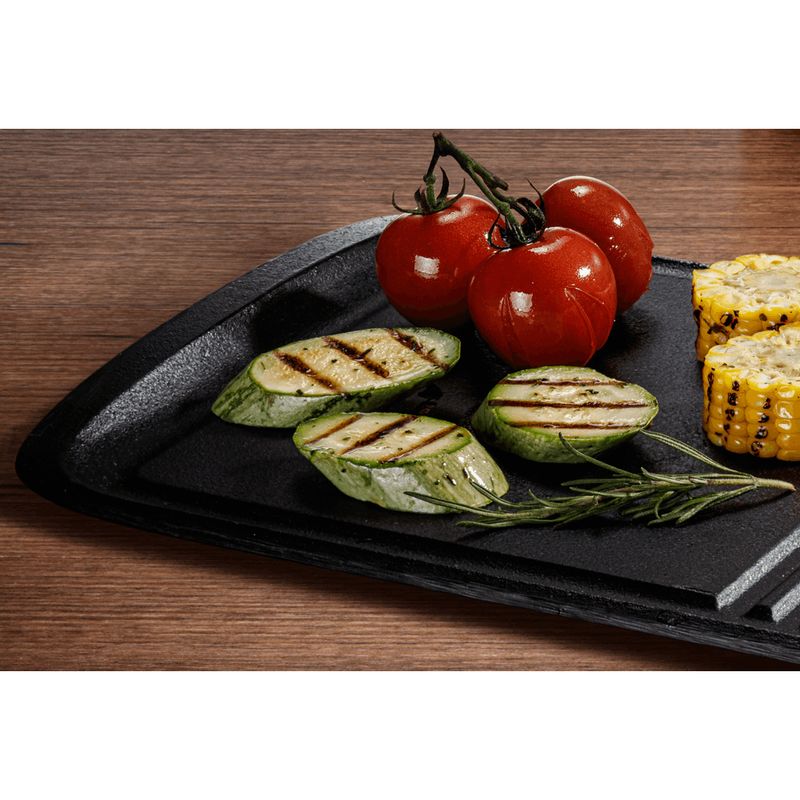 É uma peça super versátil, pois pode ser utilizada em fogões a gás, elétrico, de indução, fornos a gás e elétrico e churrasqueiras. A Chapa Grill Electrolux também conta com duas possibilidades de finalização dos alimentos na mesma peça: lisa e estriada. As estrias, além de proporcionarem o aspecto grelhado, permitem que a gordura escorra e fique armazenada nas canaletas das bordas, garantindo uma alimentação mais saudável!