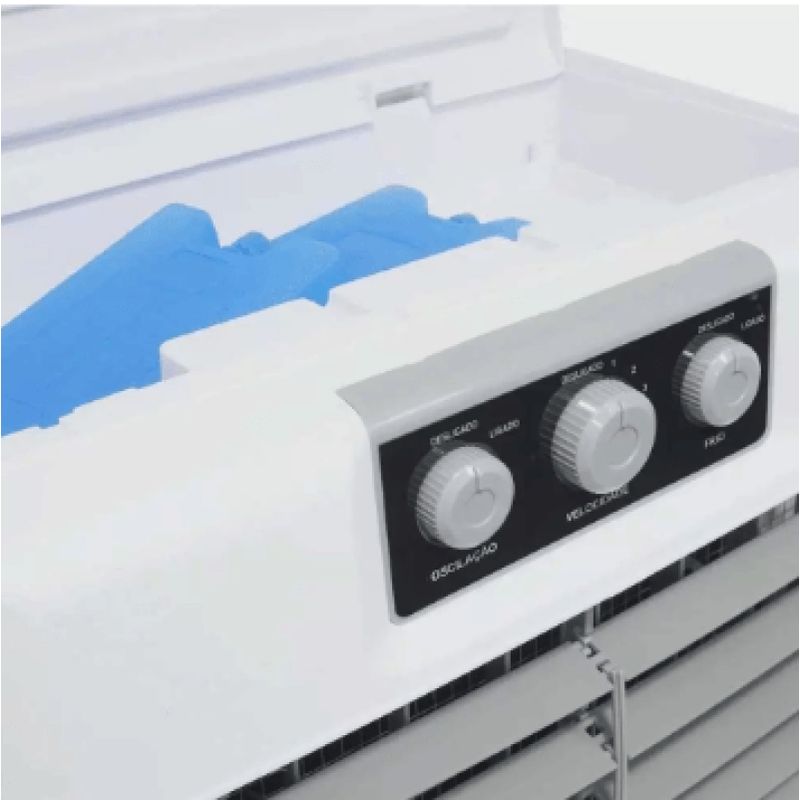 Climatizador de Ar Amvox ACL 9022. Possui tanque de água de 90 litros, potência de 180W, 3 velocidades de ventilação, swing automático e controle mecânico. Fluxo de ar máximo de 5.000m³. Intenso fluxo de ar e vasta área climatizada consumindo apenas 3-4 L/H de água. Produto amigável ao meio ambiente. Fácil manutenção e fácil de limpar.