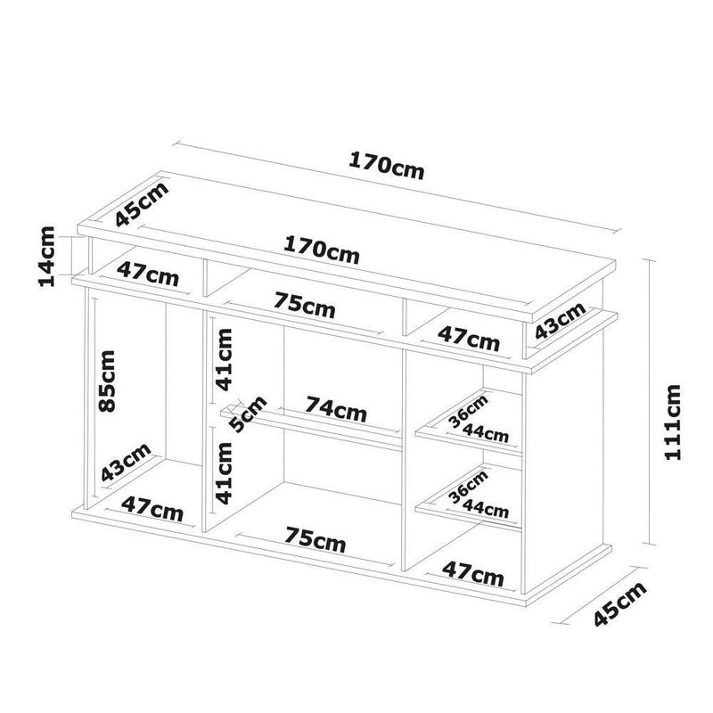 Peso Suportado: 5kg por prateleira, 3 kg por gaveta, 10kg base, 8kg tampo.