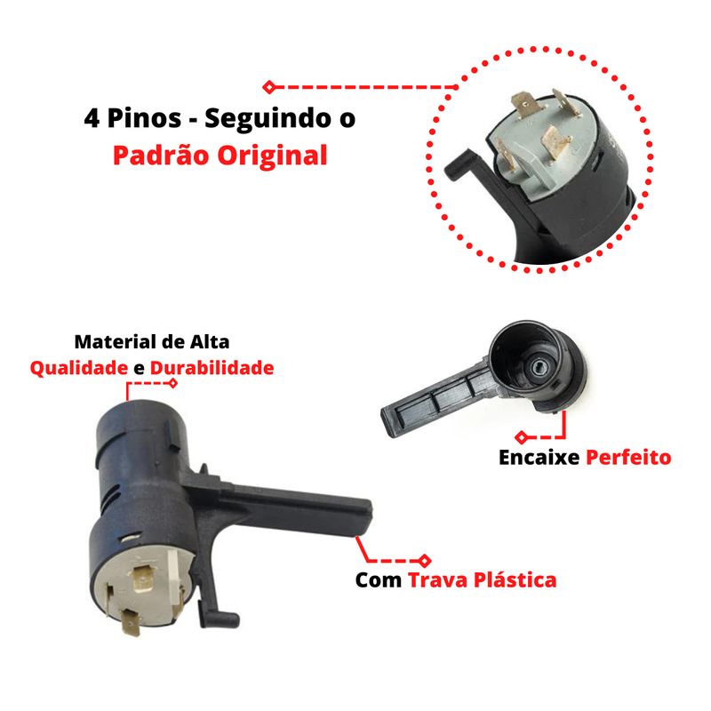 Comutador Elétrico de Ignição e Partida da Trava de Direção, fabricado em Altíssimo padrão de Qualidade e Durabilidade, seguindo exatamente o mesmo padrão de fabricação e características da peça original de fábrica._x000D_