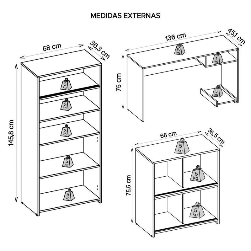 Peso: 15,2 KgESPECIFICAÇÕES TÉCNICASArmário Alto: