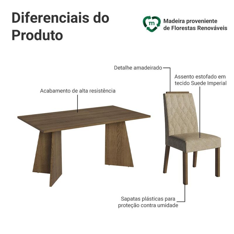 Com seis cadeiras estofadas em tecido Suede Imperial, o conjunto oferece o conforto necessário. O amplo espaço da mesa, com acabamento em tom amadeirado Rustic, cria um ambiente aconchegante. Ideal para quem busca unir beleza, funcionalidade e durabilidade em um único móvel.