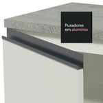 O acabamento é branco, feito em Pintura Poliéster com 7 camadas que protegem o móvel dos efeitos do álcool da água e do calor.