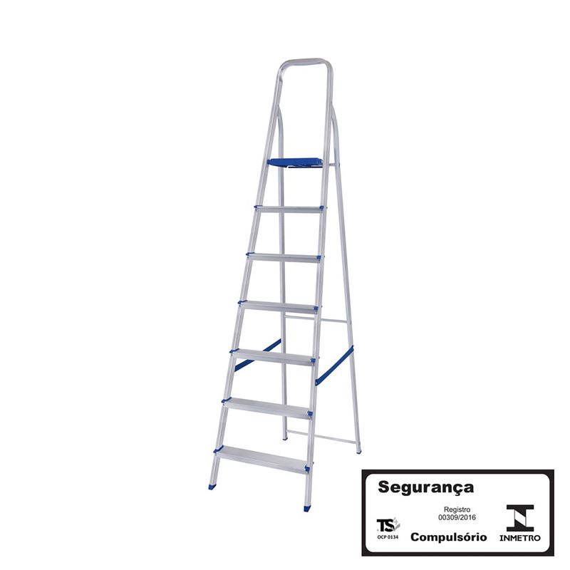 Com capacidade para 120 kg, a Escada de Alumínio 7 Degraus da Mor é leve, dobrável e fácil de guardar, perfeita para consertos e manutenção doméstica. Possui duas fitas de travamento, além do travamento automático na plataforma superior, proporcionando ainda mais estabilidade durante sua utilização. São fabricadas com estrutura em tubos e chapas de alumínio produzido na Mor, o que garante melhor qualidade estrutural ao produto, pois há controle de todo processo de fabricação. Além disso, o alumínio é um material leve e durável mesmo em áreas litorâneas. As peças plásticas da escada são feitas de polipropileno de alta resistência. Além disso, seus pés antiderrapantes e travamento automático na plataforma superior garantem maior estabilidade. Todas as escadas da Mor possuem garantia de 03 anos e estas são fabricadas de acordo com a portaria do INMETRO N° 219, de 06 de maio de 2021, o que garante a certeza de um excelente produto.