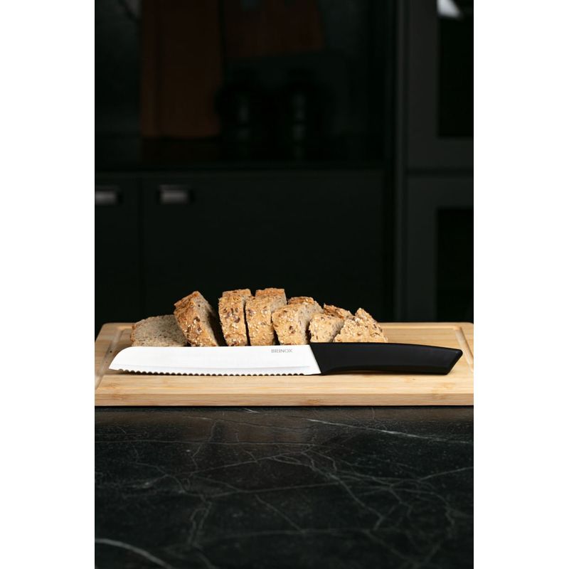 Desenvolvida com lâmina em aço inoxidável temperado com acabamento polido, a Faca Para Pão Brinox atende aos mais exigentes chefs e garante excelente afiação. Além de não enferrujar, o tratamento térmico a torna mais resistente e com maior durabilidade.