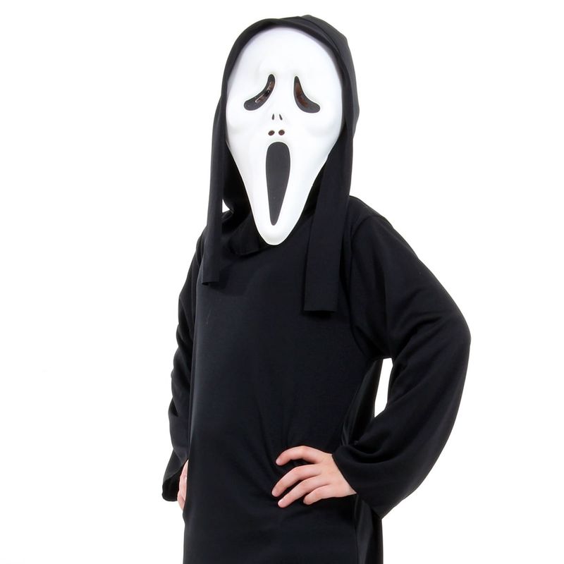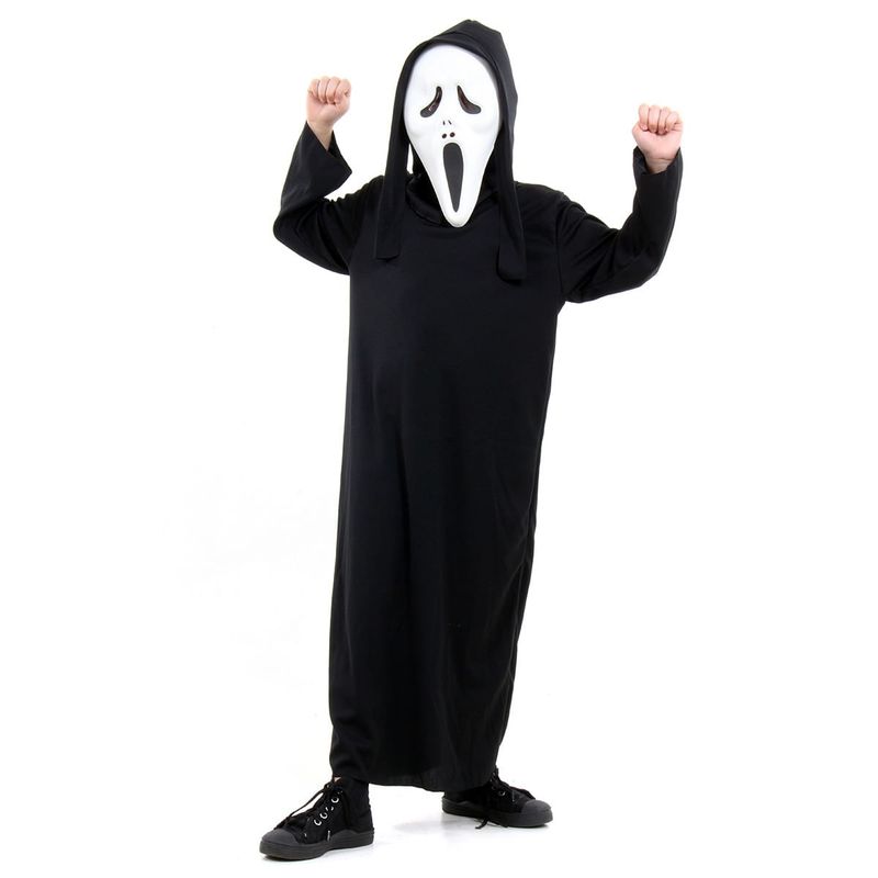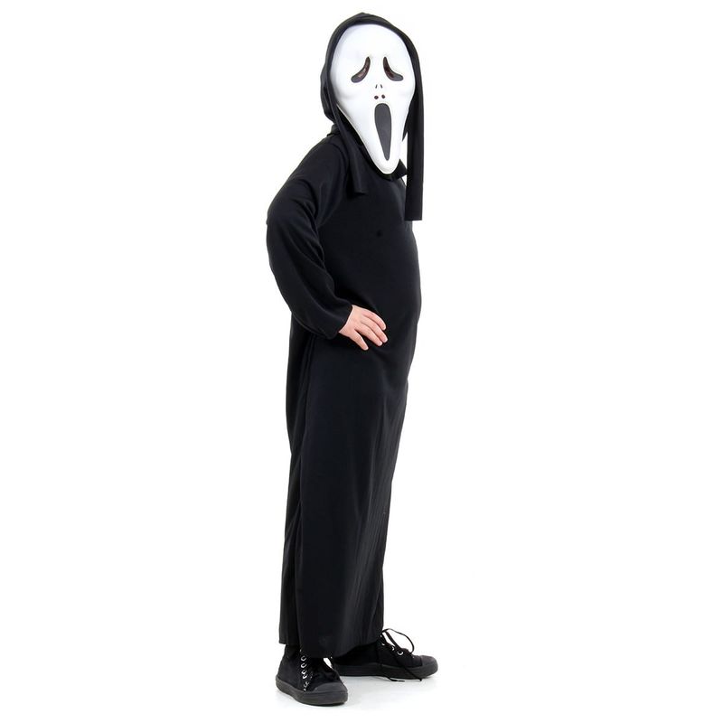 Deixe a diversão do Halloween ainda mais assustadora com a Fantasia Infantil de Pânico. Composta por uma longa túnica preta e a clássica máscara, essa fantasia é perfeita para quem quer causar arrepios nas festas temáticas.