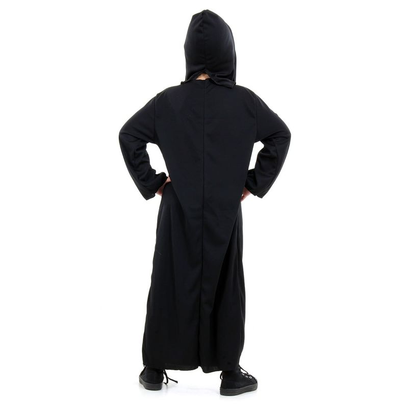 Túnica longa preta que garante um visual completo e arrepiante.