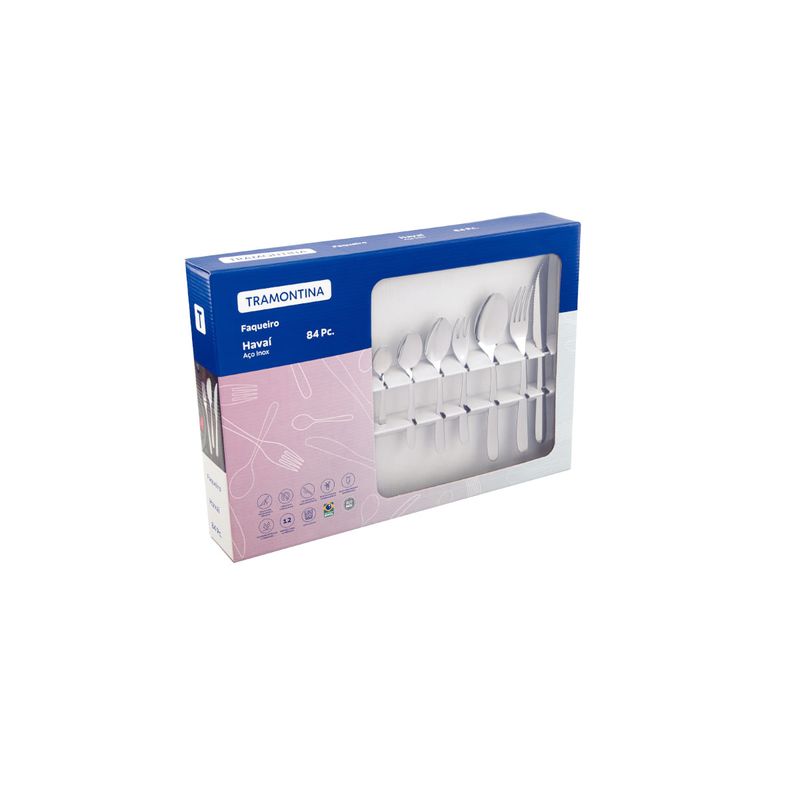 O Faqueiro para Churrasco Tramontina em Aço Inox 84 Peças da Linha Havaí é a escolha perfeita para embelezar sua cozinha. Com 84 peças que trazem a durabilidade e qualidade do aço inox, elas podem ser usadas diariamente nos mais diferentes pratos. As colheres que acompanham o faqueiro possuem bojo em formato simétrico e bordas cuidadosamente arredondadas. Os garfos com dentes polidos na parte interna, com formato apropriado para a boca e bordas arredondadas proporcionam maior conforto no uso. As facas totalmente temperadas, garantem maior durabilidade no fio de corte e maior resistência à corrosão. Elas ainda não riscam as porcelanas. O faqueiro traz também facas especiais para churrasco, completando sua versatilidade e bom gosto. Os talheres ainda dão um toque de estilo para sua mesa, devido ao acabamento em brilho. São talheres muito especiais para as tarefas do dia-a-dia.