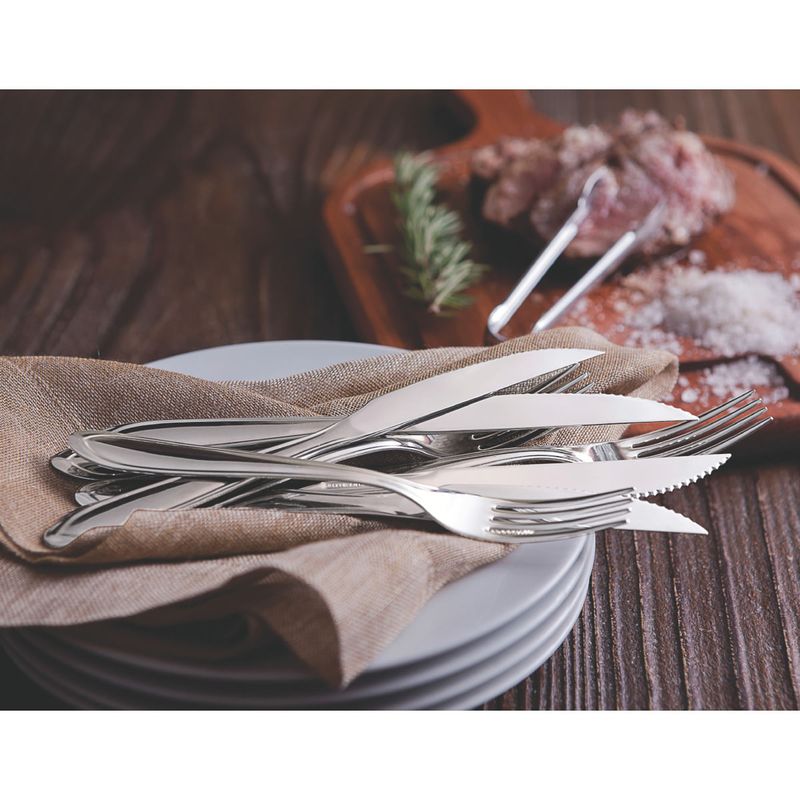 Tenha produtos de bom gosto na sua cozinha. O Faqueiro para Churrasco Tramontina Laguna em Aço Inox 16 Peças é um conjunto completo para as necessidades que você encontrar. Ideais para uso diário, as 16 peças se encaixam em qualquer ambiente e em diferentes momentos. Possuem a qualidade do aço inox e um charmoso acabamento em brilho, que embeleza sua mesa. O visual ainda impressiona pelos detalhes no cabo de cada talher. São produtos versáteis que facilitam também na hora da limpeza, podendo ser lavados diariamente na máquina de lavar louças. Os utensílios apresentam características únicas e pensadas para você. Os garfos possuem dentes polidos na parte interna, com formato apropriado para a boca e bordas arredondadas, proporcionando maior conforto no uso. As colheres com bojo tem formato simétrico e bordas cuidadosamente arredondadas. As facas são totalmente temperadas, garatindo maior durabilidade no fio de corte e maior resistência à corrosão. Elas ainda preservam as louças, já que não riscam as porcelanas. O faqueiro ainda traz facas especiais para churrasco, tornando os momentos em volta da churrasqueira mais saborosos.