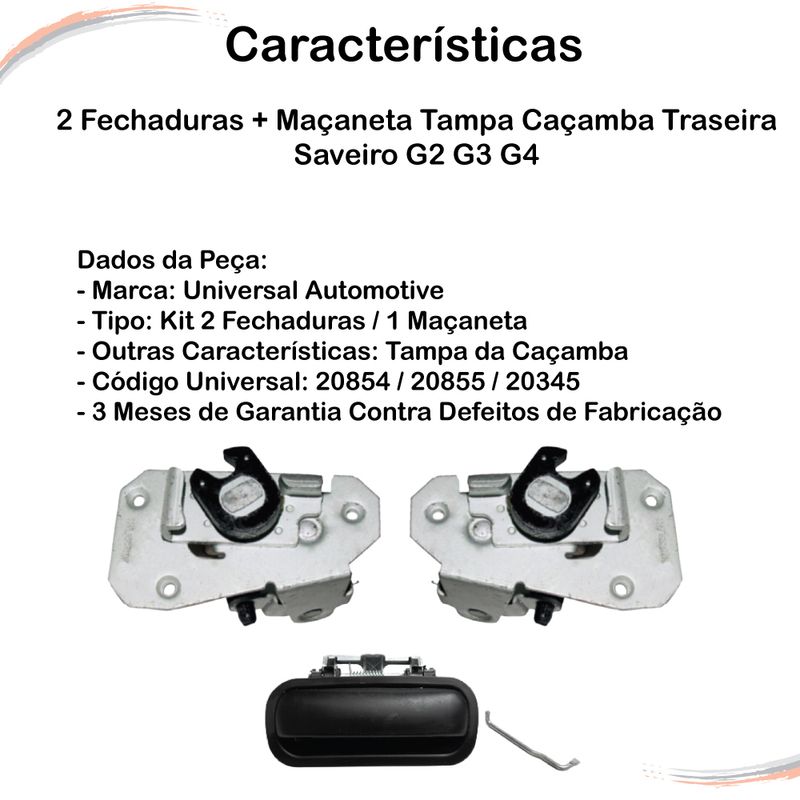 Kit com 1 Maçaneta Externa da tampa da Caçamba e 2 Fechaduras, Lados Esquerdo e Direito - Saveiro G2, G3 e G4