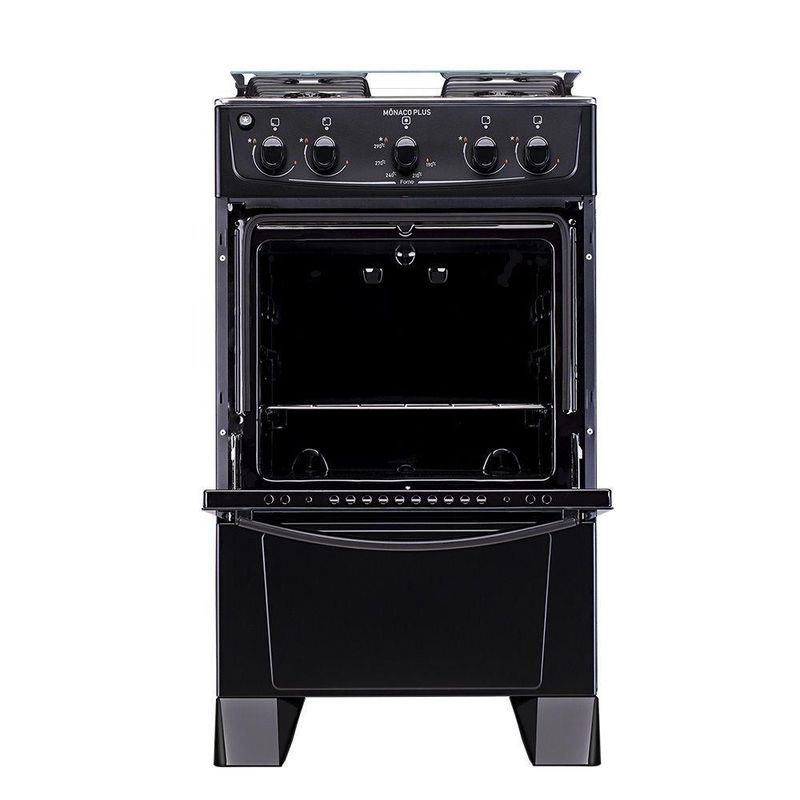 Fogão 4 Bocas Atlas Mônaco Plus Com Mesa Inox E Acendimento Automático Preto BivoltFogão 4 Bocas Atlas Mônaco PlusDurabilidade imbatível, economia garantida: Com Mônaco Plus não tem erro. Possui mesa em inox, tampa de vidro na mesa, grades duplas de aço esmaltado, acendimento automático e botões removíveis, que facilitam na hora da limpeza. A versão 4 bocas possui 2 queimadores de 1,7 kW e 2 queimadores Família de 2,0 kW. O forno possui visor amplo na porta, que permite enxergar tudo o que está dentro, capacidade de 50 litros, acabamento limpa fácil, 1 grade deslizante e porta com vidro duplo, que preserva o calor.CaracterísticasMarca: Atlas