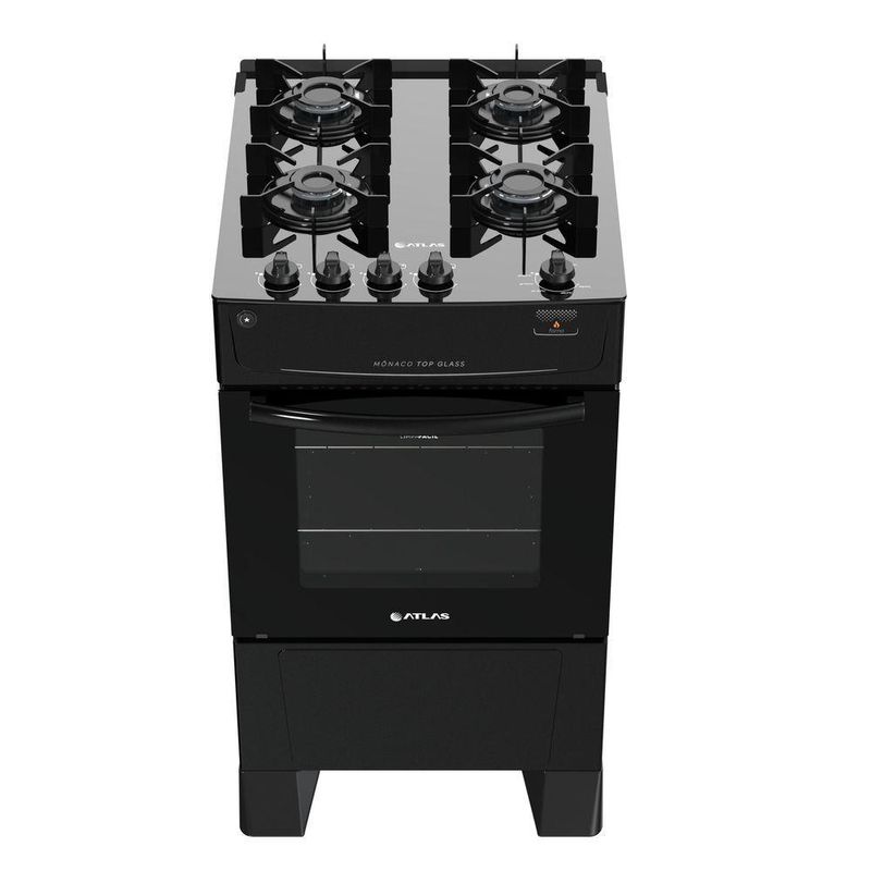 Fogão 4 Bocas Atlas Mônaco Top Glass com Acendimento Automático - PretoO Fogão Atlas Mônaco Top Glass é ideal para quem busca beleza e praticidade na cozinha. Com uma mesa de vidro elegante e funcionalidades modernas, ele traz sofisticação e facilidade de limpeza ao seu dia a dia.Características: