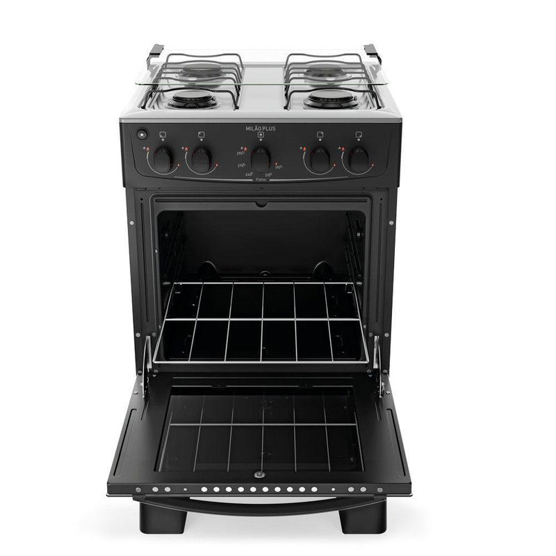 Fogão 4 Bocas Com Mesa Inox Milão Plus 30000177 Atlas Preto Bivolt