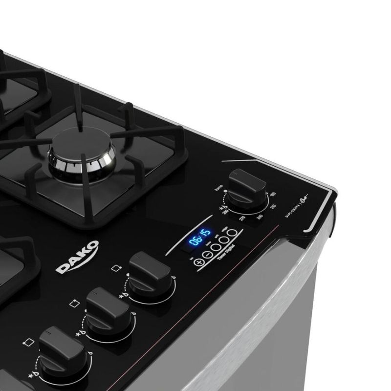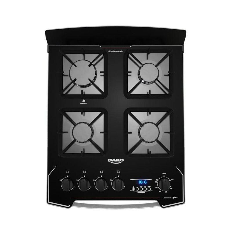 Além do desing sofisticado com frente total em vidro espelhado, o novo fogão Dako Diplomata Grill conta com uma série de diferenciais: timer digital, grill e dourador elétrico, exclusiva testeira anti-residuos em vidro temperado removível, mesa de vidro temperado com recorte frontal, grades de ferro fundido quadradas com 8 pontos de apoio, puxador de alumínio escovado, pés robustos e semi-embutidos e botões ergonômicos.