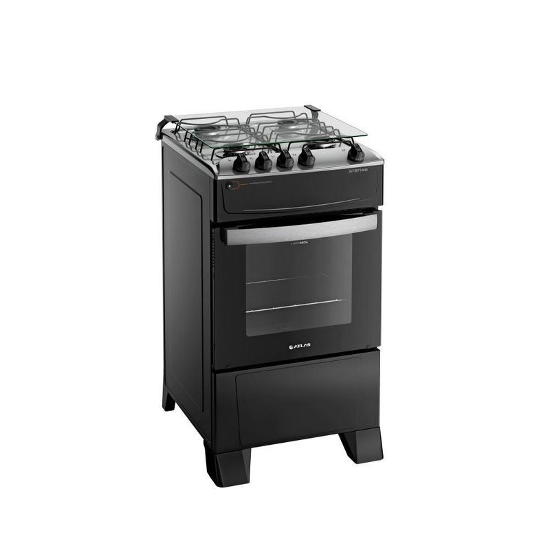 Fogão 4 Bocas Preto Com Mesa Inox Atlas Atenas Bivolt