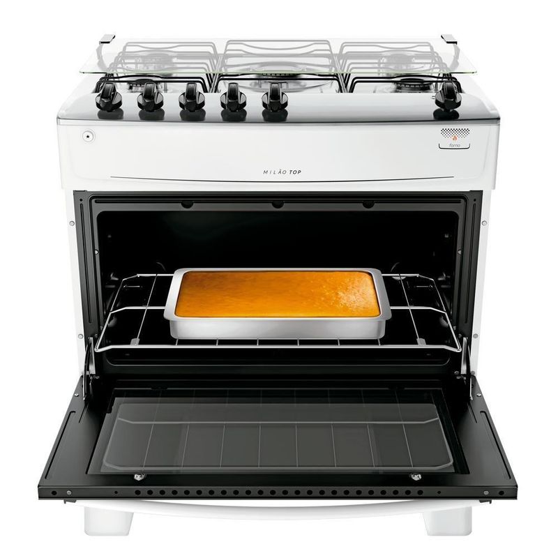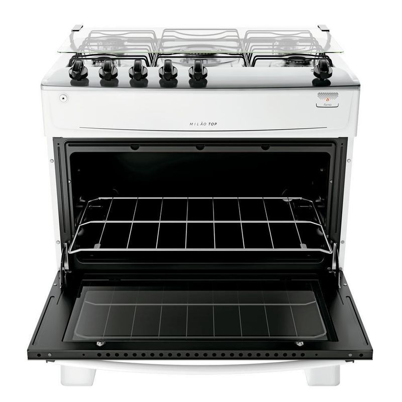 Fogão 5 Bocas Atlas Milão Top A Gás Branco Bivolt BivoltPrático, bonito e super resistente, o Fogão Atlas Milão Top é tudo o que sua cozinha precisa para facilitar o preparo das suas refeições. Com um design moderno e acabamento de inox, ele une funcionalidade e praticidade, deixando sua cozinha limpa, organizada e, claro, bem equipada!A tampa de vidro não só protege suas paredes contra respingos, como também dá um toque elegante e moderno ao ambiente. Quando precisar dar aquela limpada rápida, a tampa de vidro e os pés altos, que permitem passar a vassoura por baixo, tornam a tarefa muito mais fácil.Esse fogão vem totalmente montado — é só instalar o gás e começar a usar, sem complicação! A função acendimento automático, que acende com um simples “girou, clicou, acendeu”, dispensa o uso de fósforos, trazendo ainda mais comodidade.O fogão possui 5 bocas, sendo uma delas o mega-chama, para aquelas receitas que exigem mais potência. Os queimadores forjados são duráveis e resistentes, e o forno com acabamento Limpa Fácil facilita a manutenção e limpeza. Além disso, a grade deslizante do forno, com 2 regulagens de altura, é perfeita para ajustes rápidos durante o preparo dos alimentos.Ideal para sua cozinha: o Fogão Atlas Milão Top é a escolha perfeita para quem busca praticidade, resistência e estilo, com a confiabilidade de um produto nacional. Com 5 bocas e grande capacidade no forno, ele facilita o preparo de pratos para toda a família, mantendo o ambiente sempre limpo e organizado.Não perca tempo e transforme sua cozinha com o Fogão Atlas Milão Top!Especificações Técnicas: