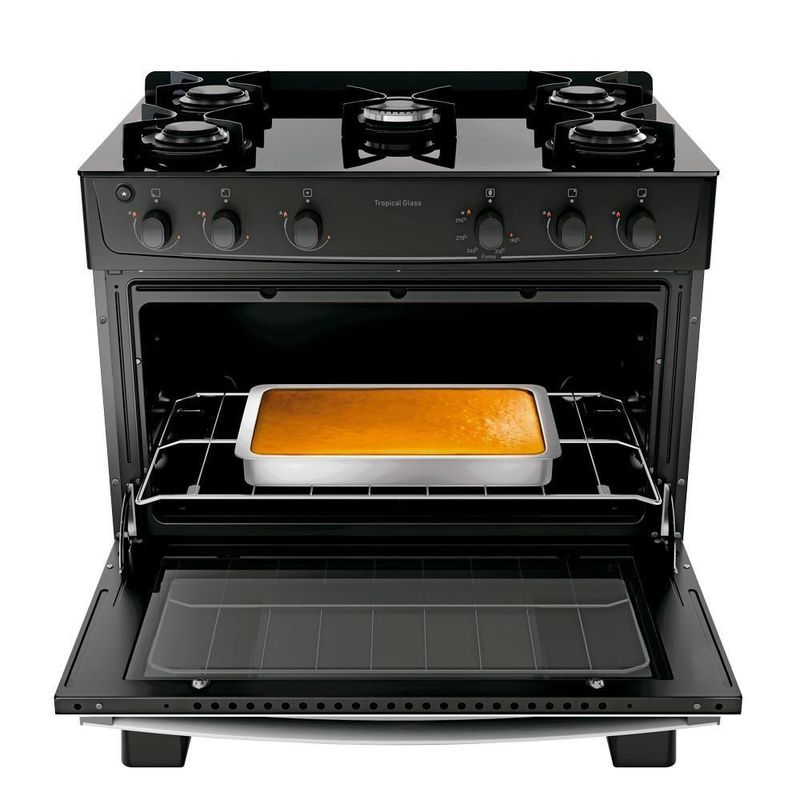 Forno: Com capacidade de 86,5L e acabamento de Esmalte Limpa Fácil, tornando a limpeza mais prática.