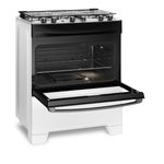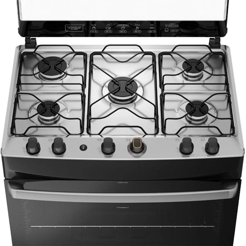 Seu fogão sempre limpinho com a Tecnologia TopLimpaFácil, que combina a mesa em aço inox compartimentada, que evita líquidos e sujeiras de se espalharem pela superfície do produto. O forno, de grande capacidade e com luz interna, possui cantos arredondados para evitar acúmulo de sujeira, vidro interno removível para uma limpeza mais completa e grades em aço revestido que não deixam a gordura grudar.