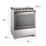 Vidro interno do forno: removível e pode ser retirado com facilidade para obter uma limpeza profunda e completa do seu forno; Tecnologia FastClean: forno com revestimento que impede a entrada de impurezas e sujeiras, facilitando a remoção de gordura e resíduos de comida, com 2 anos de garantia; Mesa de inox compartimentada: design moderno que evita que líquidos escorram, permitindo uma limpeza profunda do fogão; Queimadores selados e botões removíveis: permitem menor esforço na limpeza do fogão.