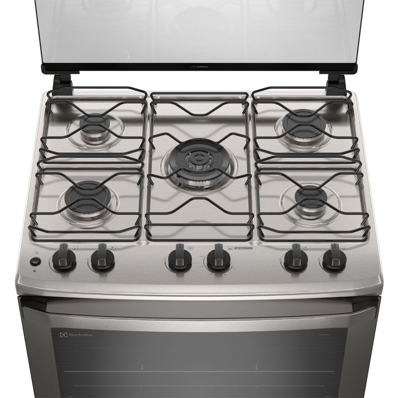 Tecnologias do fogão 5 bocas cinza O Fogão Electrolux 5 Bocas Cinza apresenta tecnologias que aliam eficiência e facilidade no preparo de diferentes pratos no forno e no fogão.