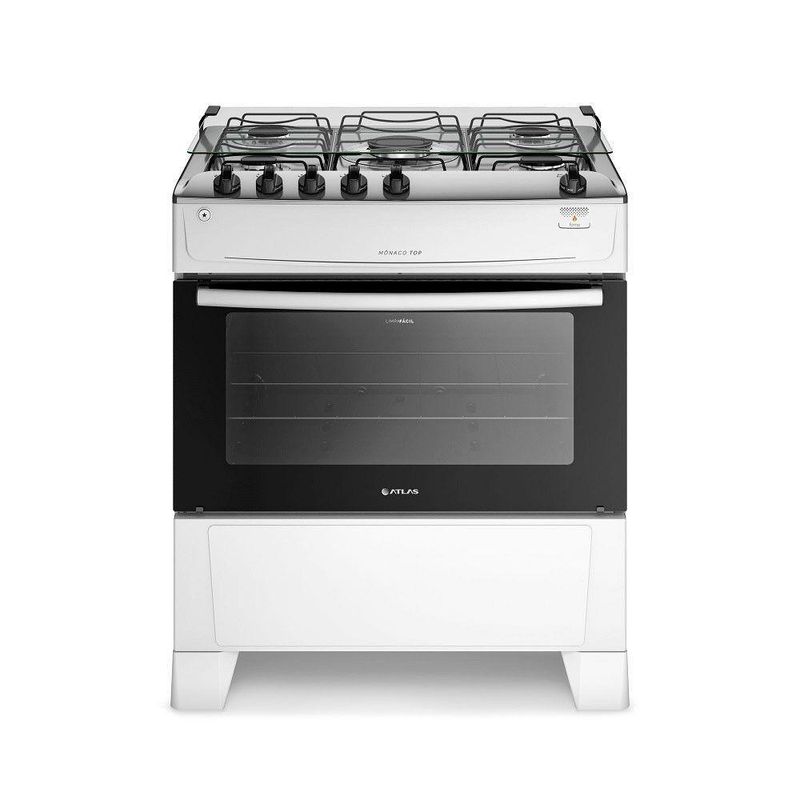 Fogão 5 Bocas Monaco Top Com Mesa De Inox Atlas Branco Bivolt