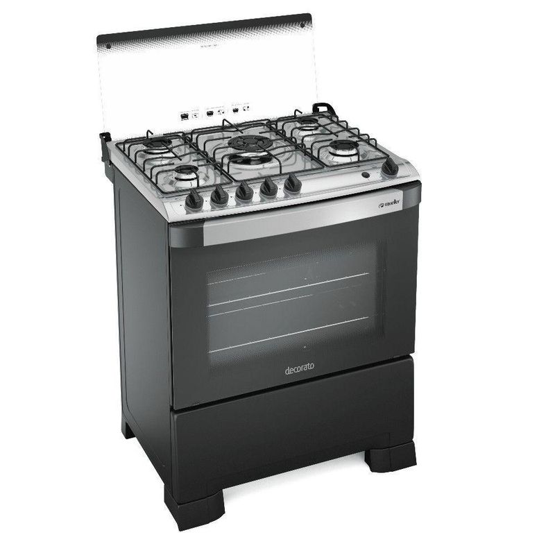 Fogão 5 Bocas Mueller Decorato G3 Tripla Chama Preto Fosco BivoltQuem gosta mesmo de cozinhar entende o que isso significa. Seja colocar uma refeição quentinha na mesa ou impressionar com pratos elaborados, cozinhar é um ato de carinho e cuidado. Inspire-se a criar experiências incríveis cozinhando com os fogões Decorato!Características:1 Queimador tripla chama