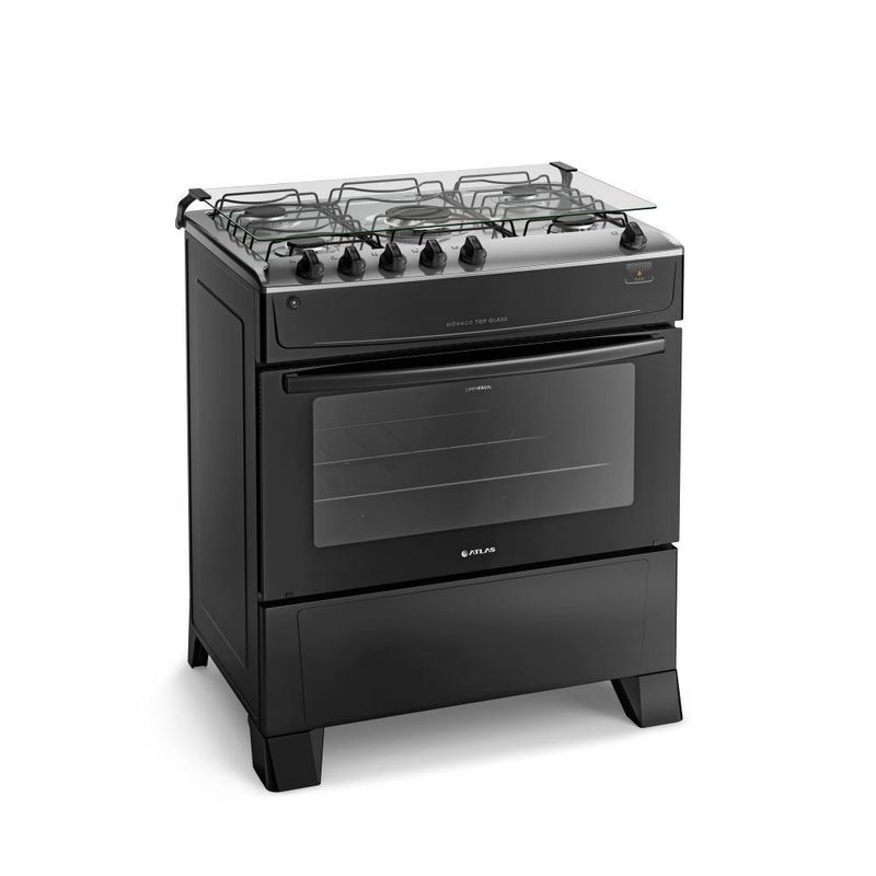 Fogão 5 Bocas Preto Com Mesa Inox Atlas Mônaco Top Bivolt
